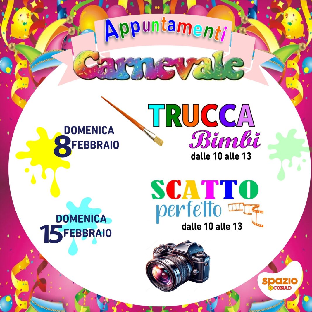 Carnevale è allegria, colori, risate e noi di Spazio Conad lo sappiamo, ecco perché abbiamo pensato per voi a due appuntamenti speciali: