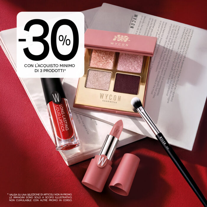 WYCON COSMETICS – 30% SU TUTTO Dal 23/01 È tempo di rinnovare i tuoi must-have beauty. Acquista minimo 3 prodotti e ottieni -30% di sconto.